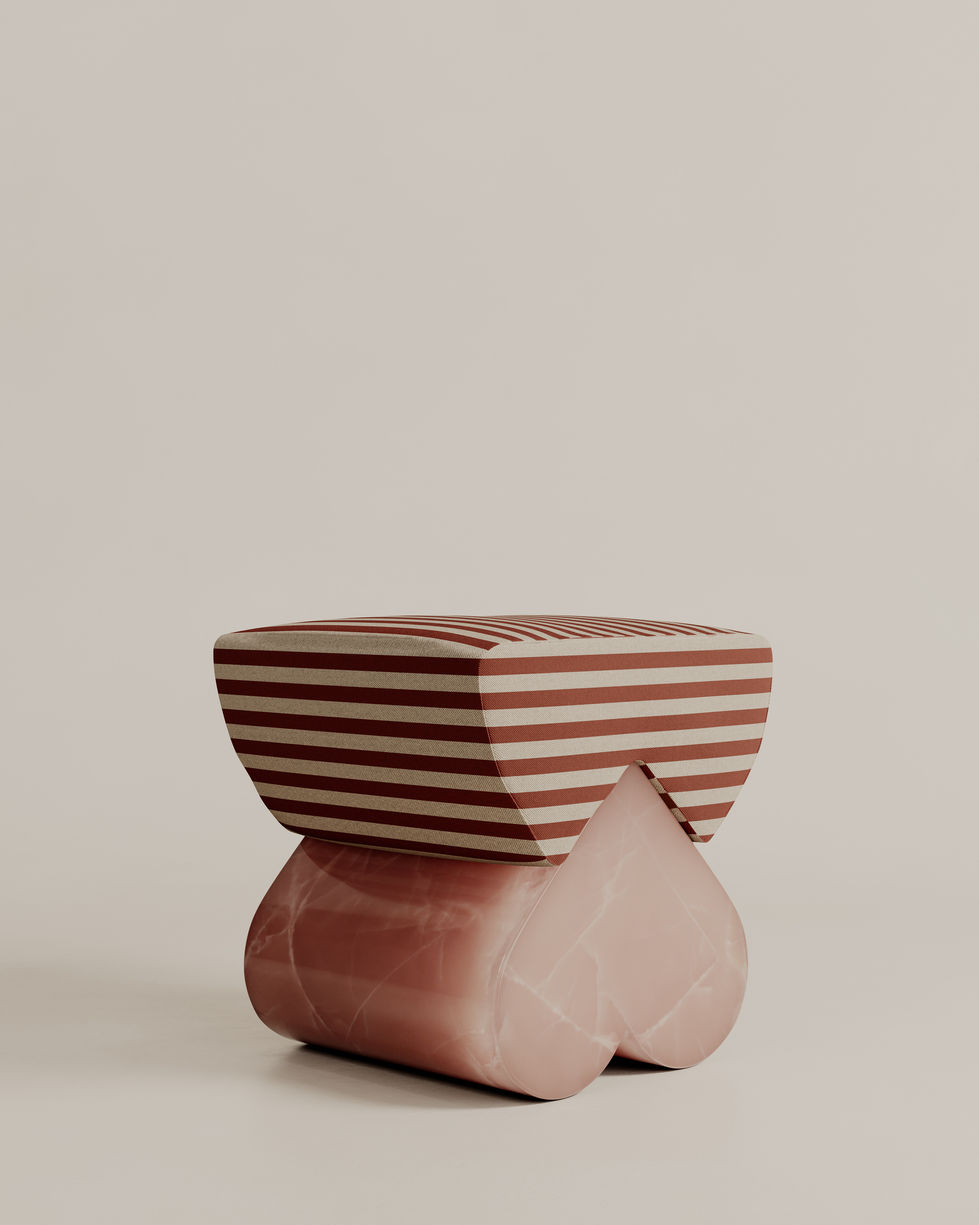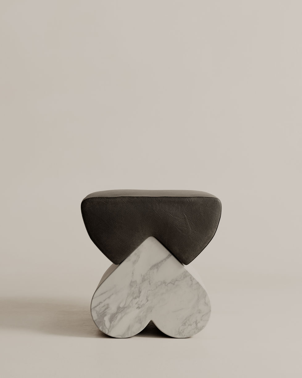 Onice Rosa & Upholstered Cushion, Arabescato Carrara & Black Leather Cushion